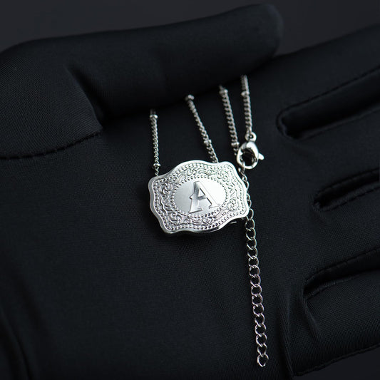 Collier Initiale Boucle de Ceinture Délicat Bijou Western Acier